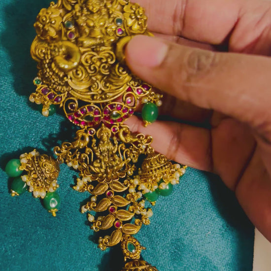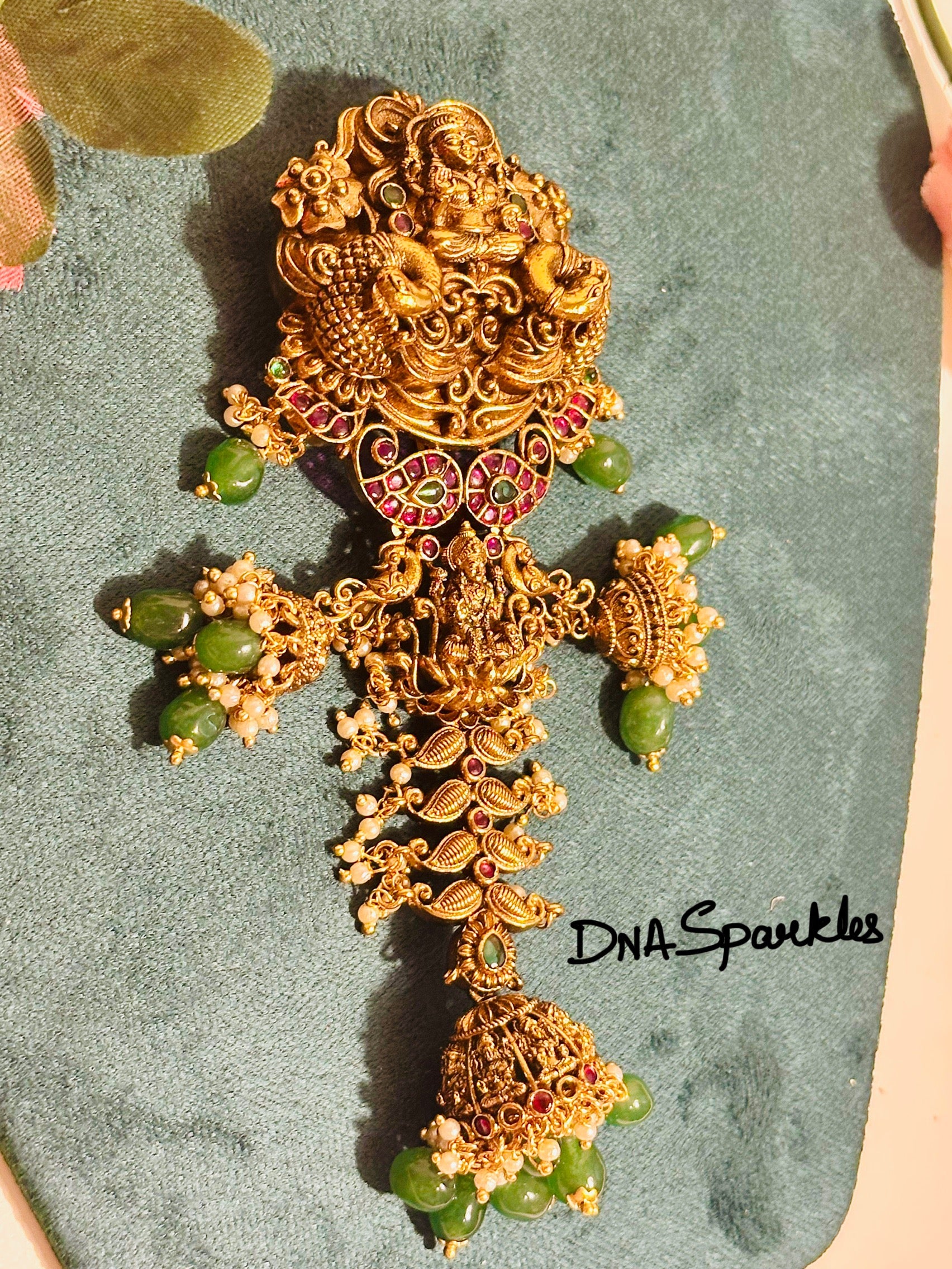 Add a touch of elegance to your hairstyle with the Nakshi Hair Accessory. Featuring a unique and intricate Nakshi design, this hair accessory is perfect for any occasion. Made with precision and expertise, it will add the perfect finishing touch to your look.