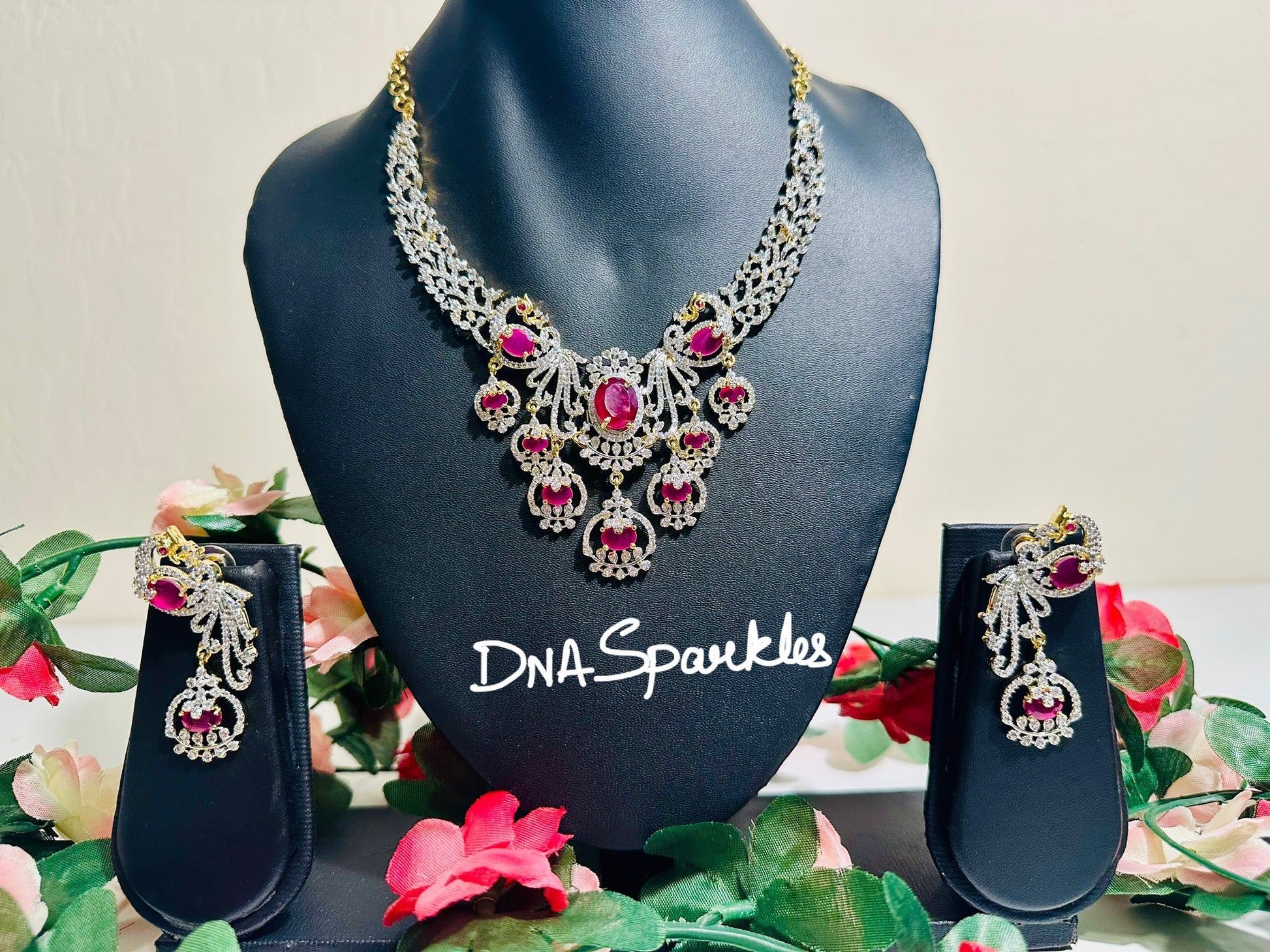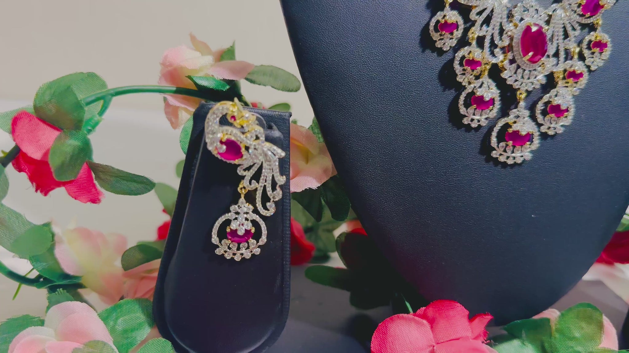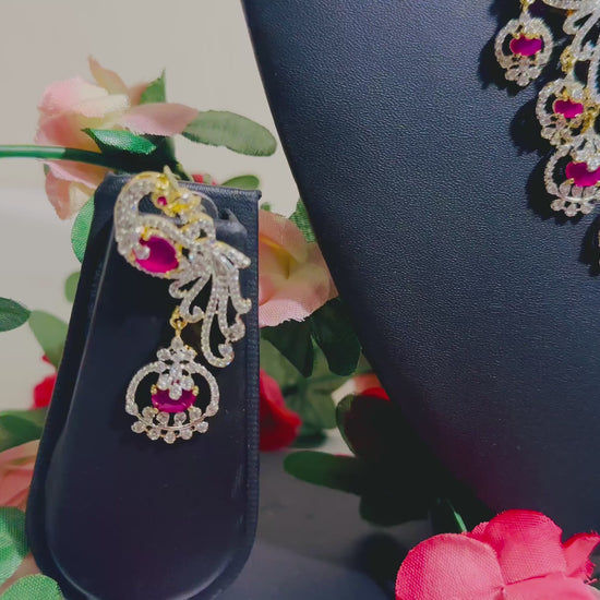This stunning Peacock white stone necklace boasts a beautifully intricate peacock design, adorned with delicate pink stones. Expertly crafted, this necklace adds a touch of elegance and sophistication to any outfit. Perfect for both special occasions and everyday wear, this necklace is truly a versatile and timeless piece.