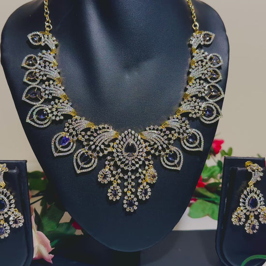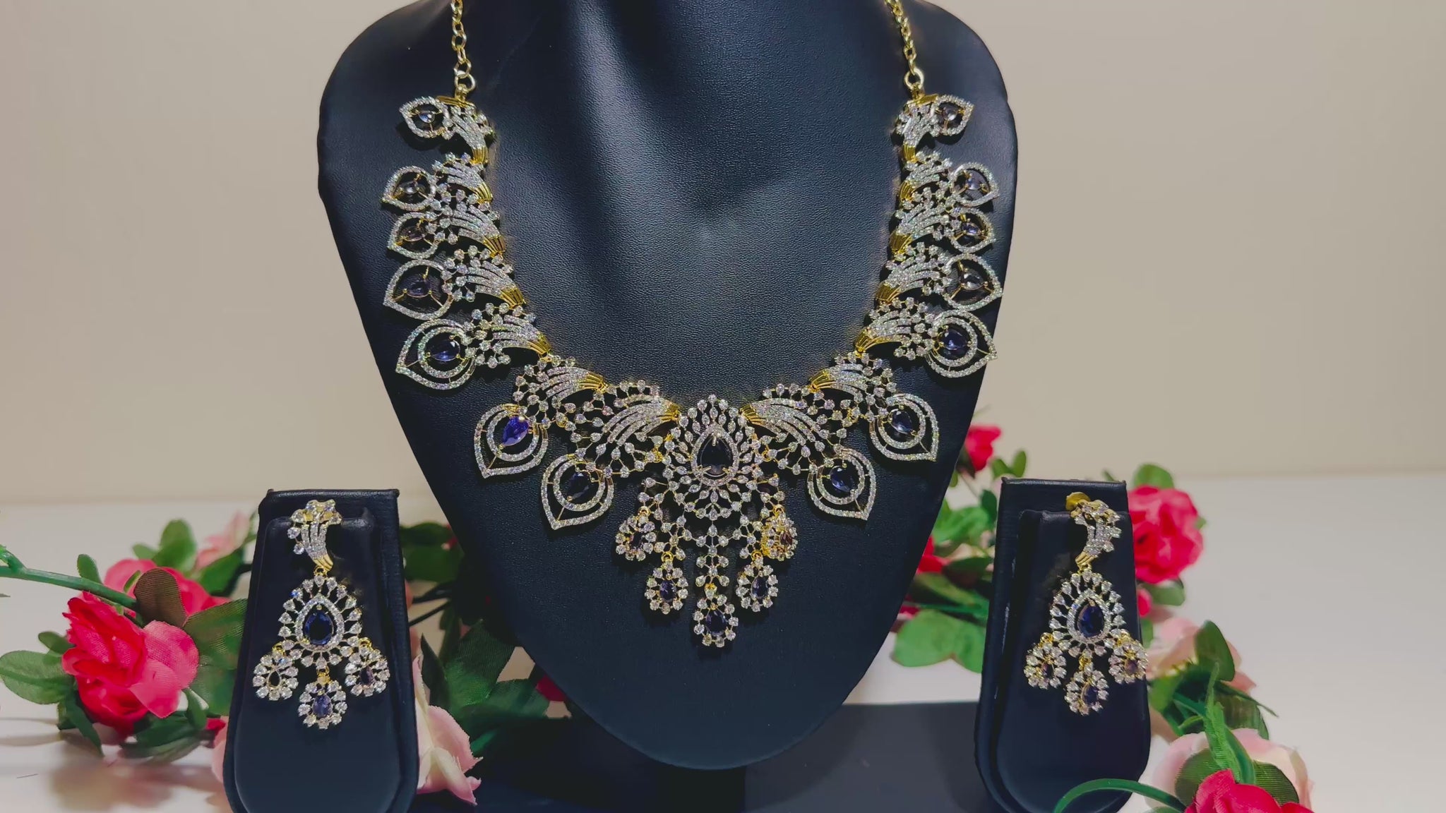 This exquisite necklace features a dazzling combination of purple and white stones. Handcrafted with intricate detail, it is the perfect accessory to elevate any outfit. Adorn yourself with confidence and sophistication with this stunning purple white stone necklace.